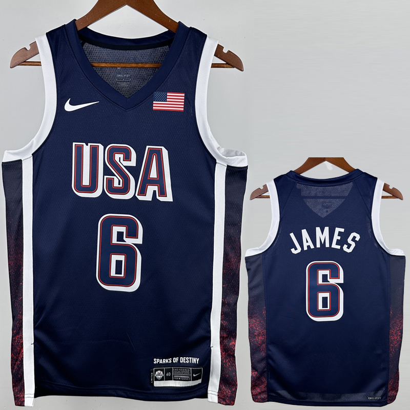 2024 Olympic Game USA JAMES # 6 Dark Blue Basketball Jersey