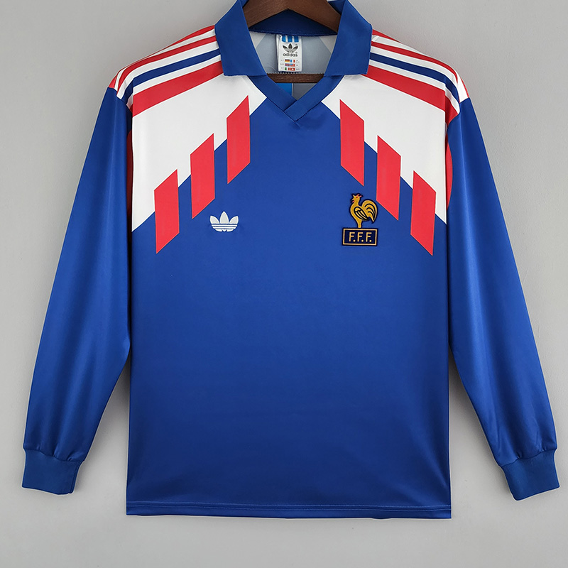 1988-1990 France Home Long Sleeve Retro Soccer ...